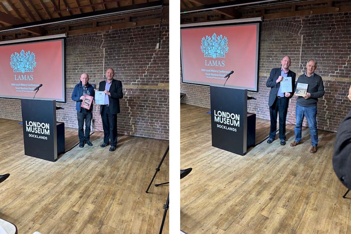 We are pleased to report that Hornsey Historical Society has won two prestigious awards from LAMAS (London and Middlesex Archaeological Society). The awards were presented at the 59th Local History Conference, held by LAMAS at the Museum of London Docklands on 15th November 2025. John Price, Chair of LAMAS Local History Committee, presented the awards.